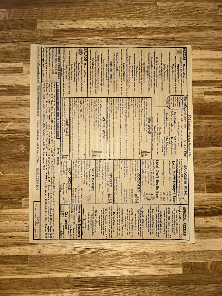 The 500 Degrees Brixton Menu is a bold and satisfying testament to how proper wood-fired pizza should taste, firmly rooted in Neapolitan tradition yet confidently adapted for the London palate. Located conveniently near Brixton Station, this gem offers more than just another pizza joint experience-it’s a well-executed homage to authenticity, with quality and flavour as its cornerstones.